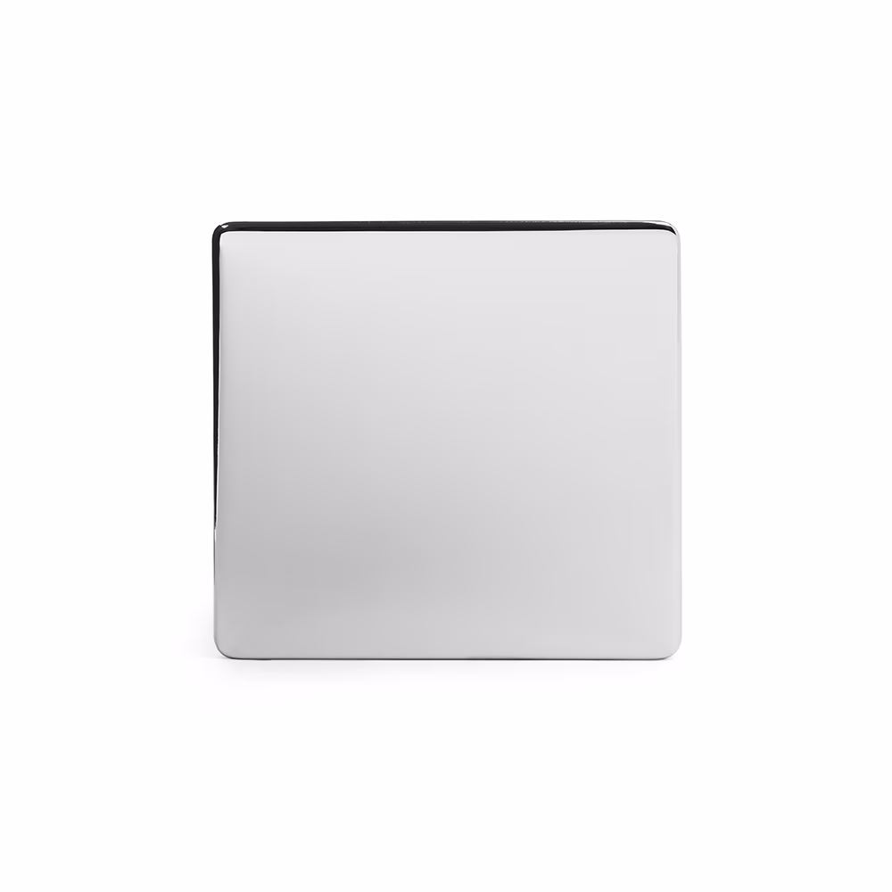 This Polished Chrome [1 Gang Blanking Plate] matches beautifully in any interior. It is available with a White or Black Insert and Flat or Traditional plate.