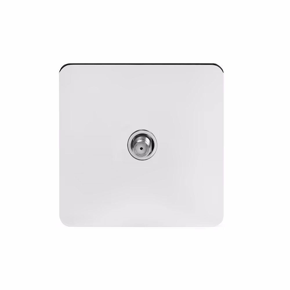 This Polished Chrome [1 Gang Satellite Socket] matches beautifully in any interior. It is available with a White or Black Insert and Flat or Traditional plate.