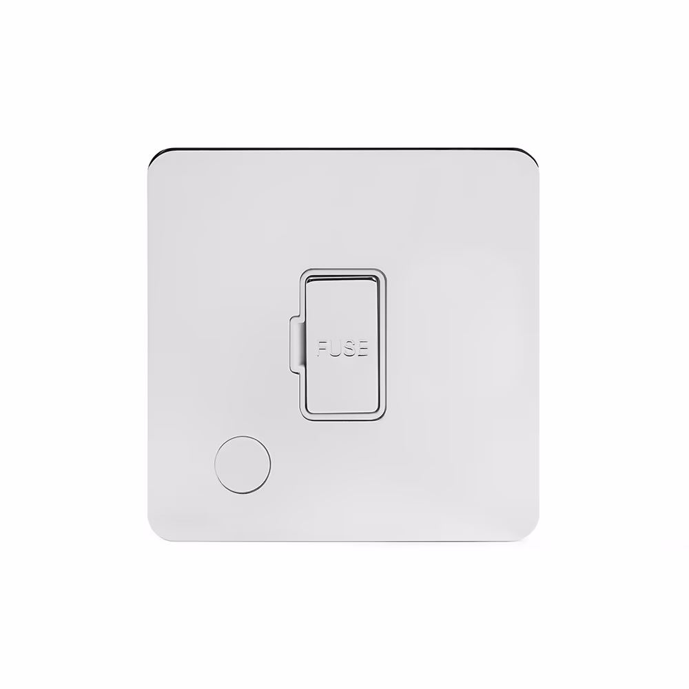 This Polished Chrome [13A Unswitched Fused Connection Unit (FCU) Flex Outlet] matches beautifully in any interior. It is available with a White or Black Insert and Flat or Traditional plate.