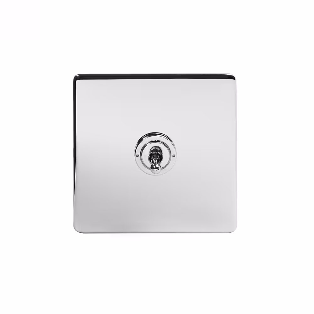 This Polished Chrome [20A 2 Gang Intermediate Toggle Switch] matches beautifully in any interior. It is available with a White or Black Insert and Flat or Traditional plate. Socket and switch finishes are an important consideration for interior design and styling and should be chosen to match their surroundings. If you have polished chrome finishes in your kitchen (unit handles/appliances) or bathroom (towel rails etc), then this collection will provide the perfect compliment.