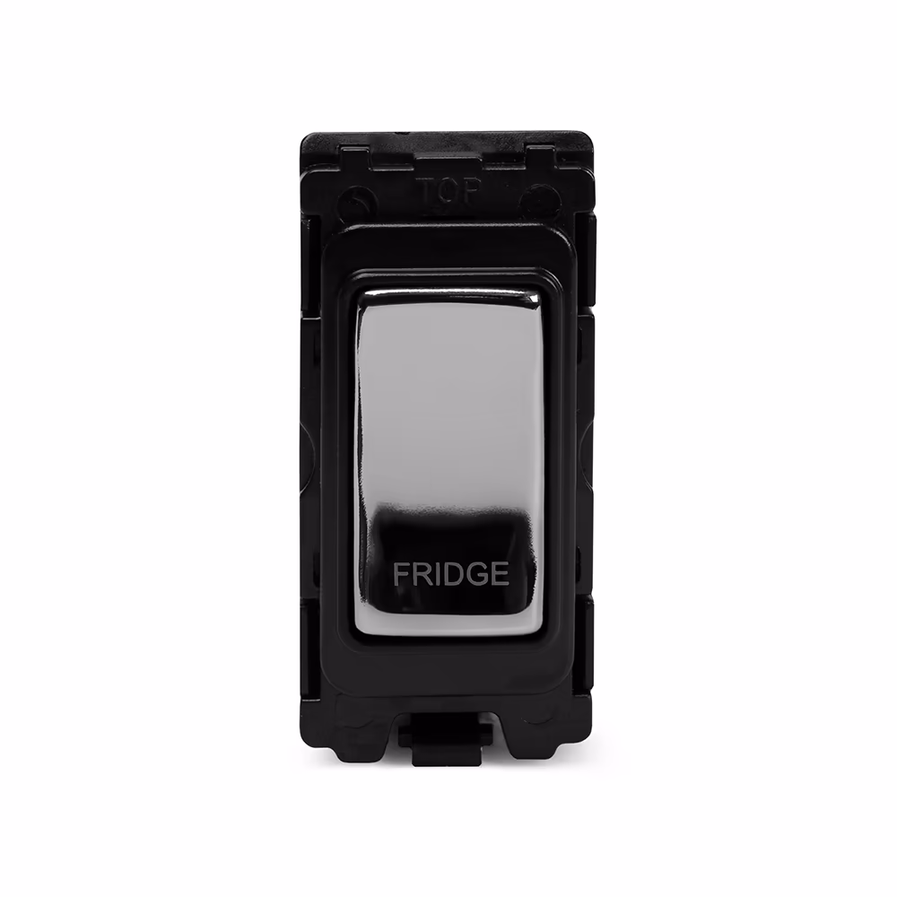 This Polished Chrome [20A Double Pole 'Hob' RM-Grid Switch Module] matches beautifully in any interior. It is available with a White or Black Insert and Flat or Traditional plate.