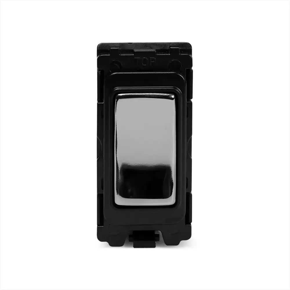 This Polished Chrome [20AX Intermediate RM-Grid Switch Module] matches beautifully in any interior. It is available with a White or Black Insert and Flat or Traditional plate.
