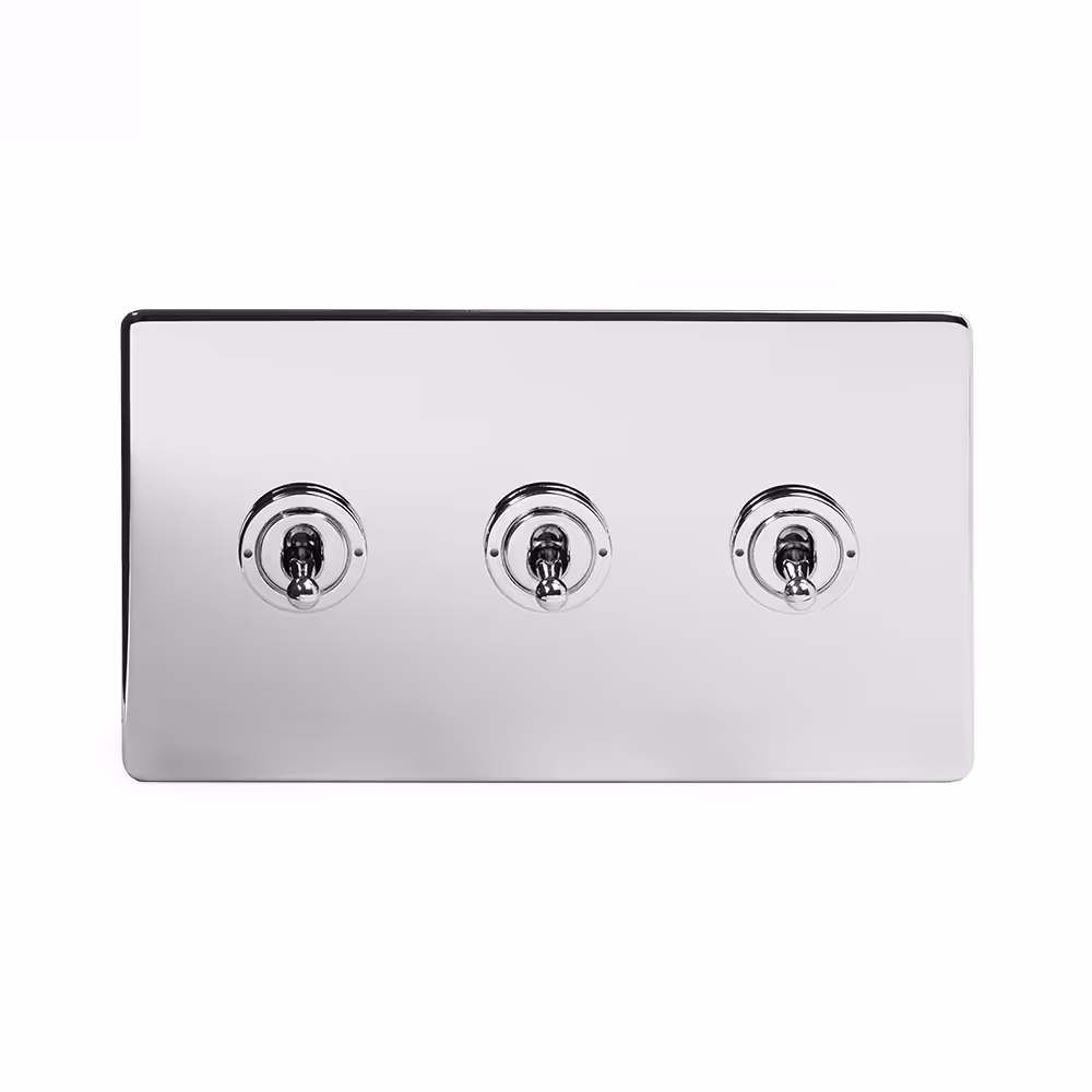 This Polished Chrome [20A 4 Gang 2 Way Toggle Switch] matches beautifully in any interior. It is available with a White or Black Insert and Flat or Traditional plate. Socket and switch finishes are an important consideration for interior design and styling and should be chosen to match their surroundings. If you have polished chrome finishes in your kitchen (unit handles/appliances) or bathroom (towel rails etc), then this collection will provide the perfect compliment.