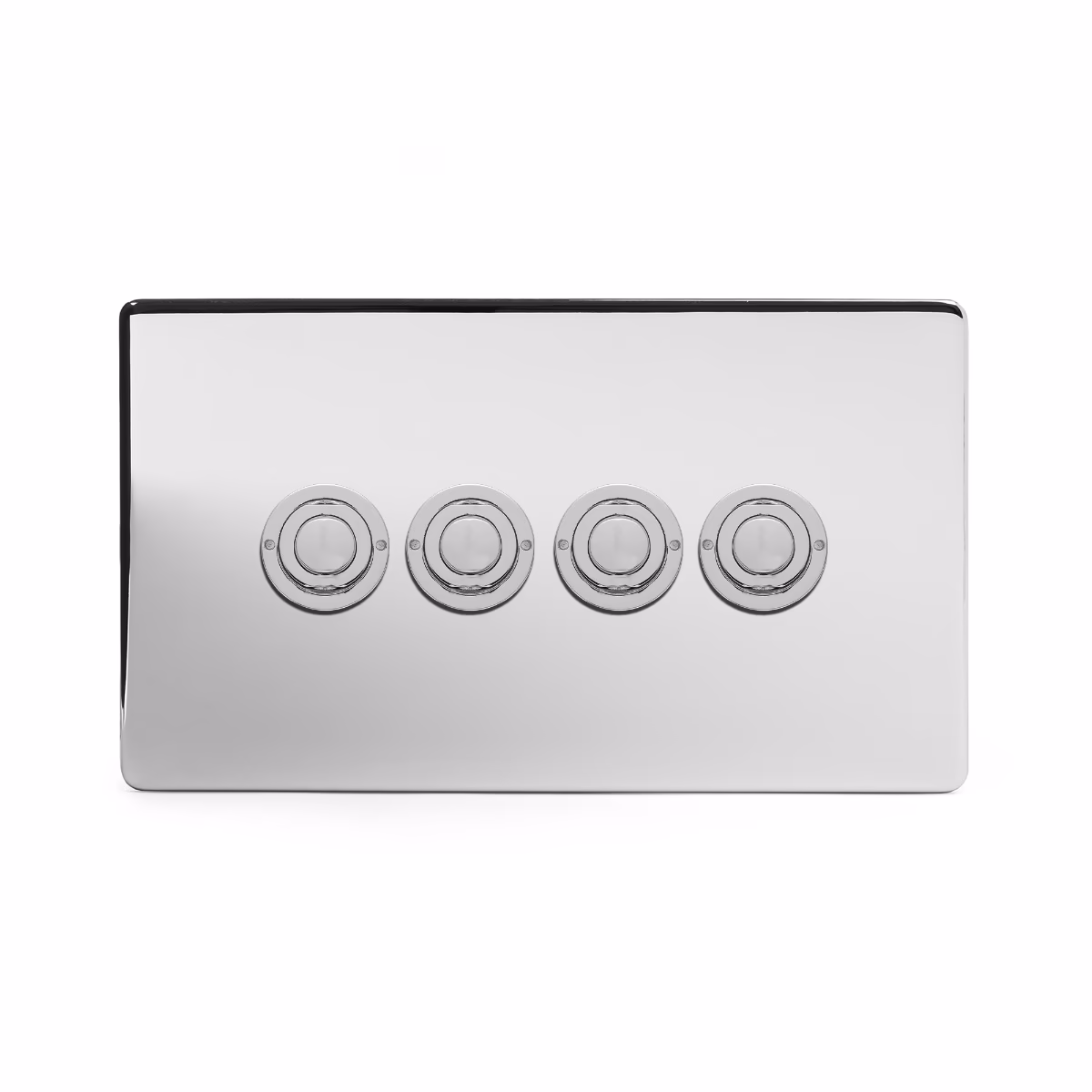 This Polished Chrome [4 Gang 6A 2 Way Retractive Push Button Switch] matches beautifully in any interior. It is available with a White or Black Insert and Flat or Traditional plate.