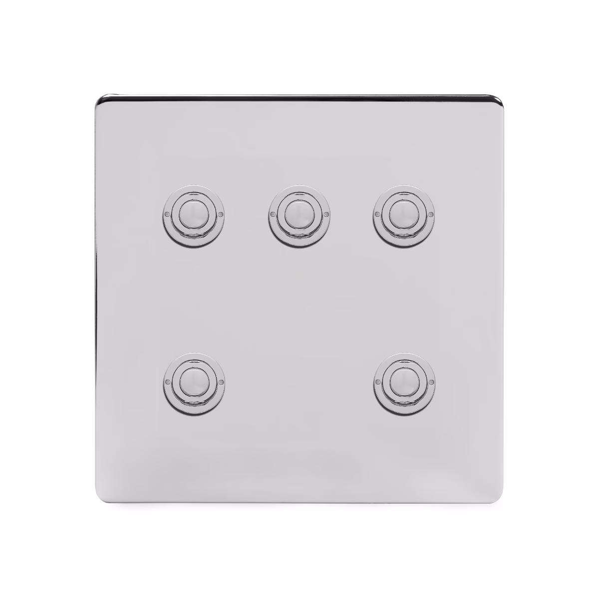This Polished Chrome [5 Gang 6A 2 Way Retractive Push Button Switch] matches beautifully in any interior. It is available with a White or Black Insert and Flat or Traditional plate.
