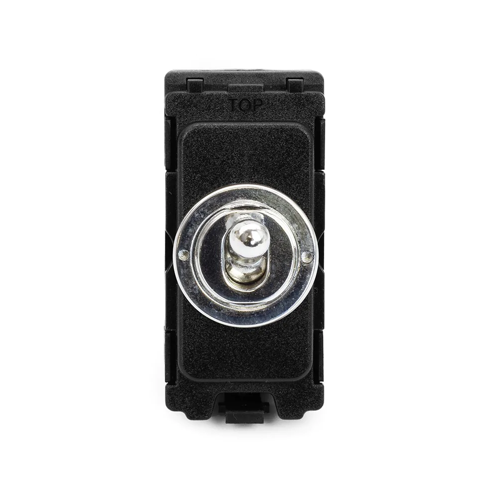 This Polished Chrome [Dimming Toggle CM-Grid Switch Module] matches beautifully in any interior. It is available with a White or Black Insert and Flat or Traditional plate.