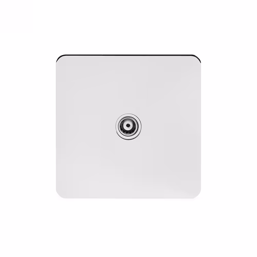 This Polished Chrome [TV Coaxial Aerial Socket] matches beautifully in any interior. It is available with a White or Black Insert and Flat or Traditional plate.